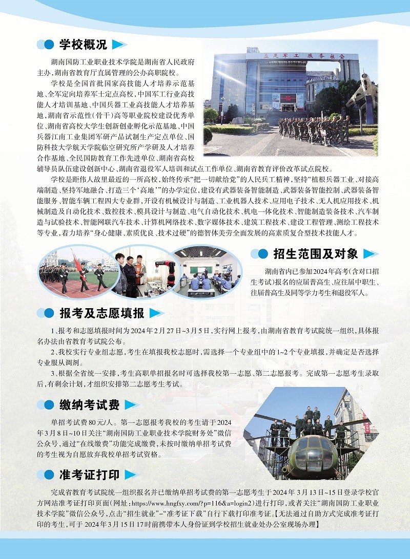 湖南国防工业职业技术学院2024年单独招生简章