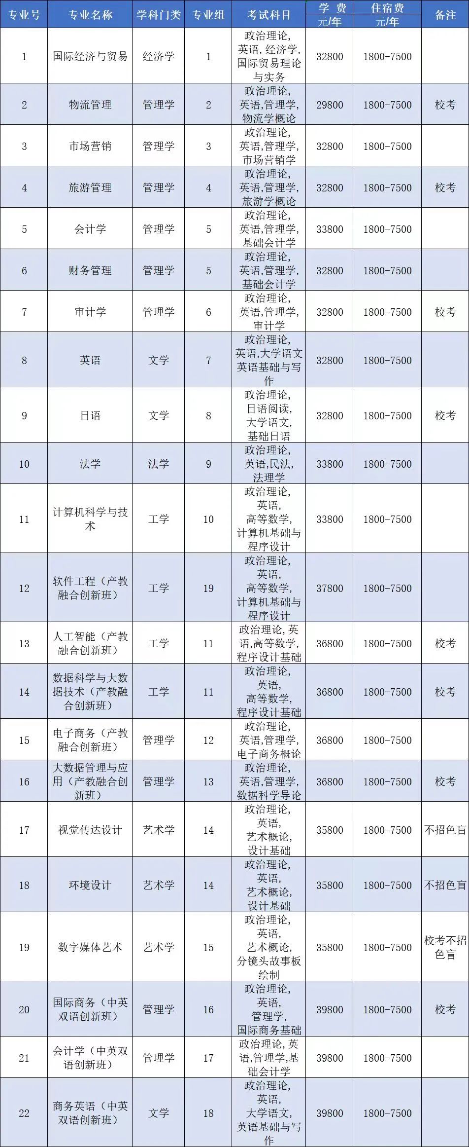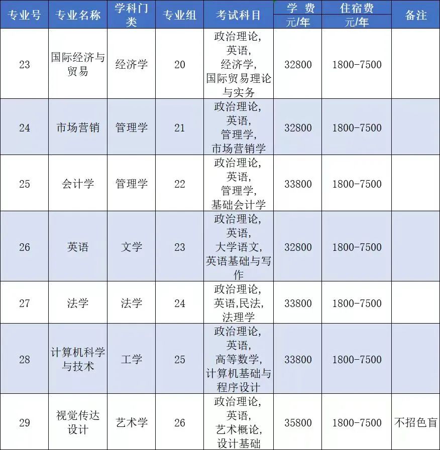 2、所有专业均无前置专业限制要求,艺术学类专业不招色盲。