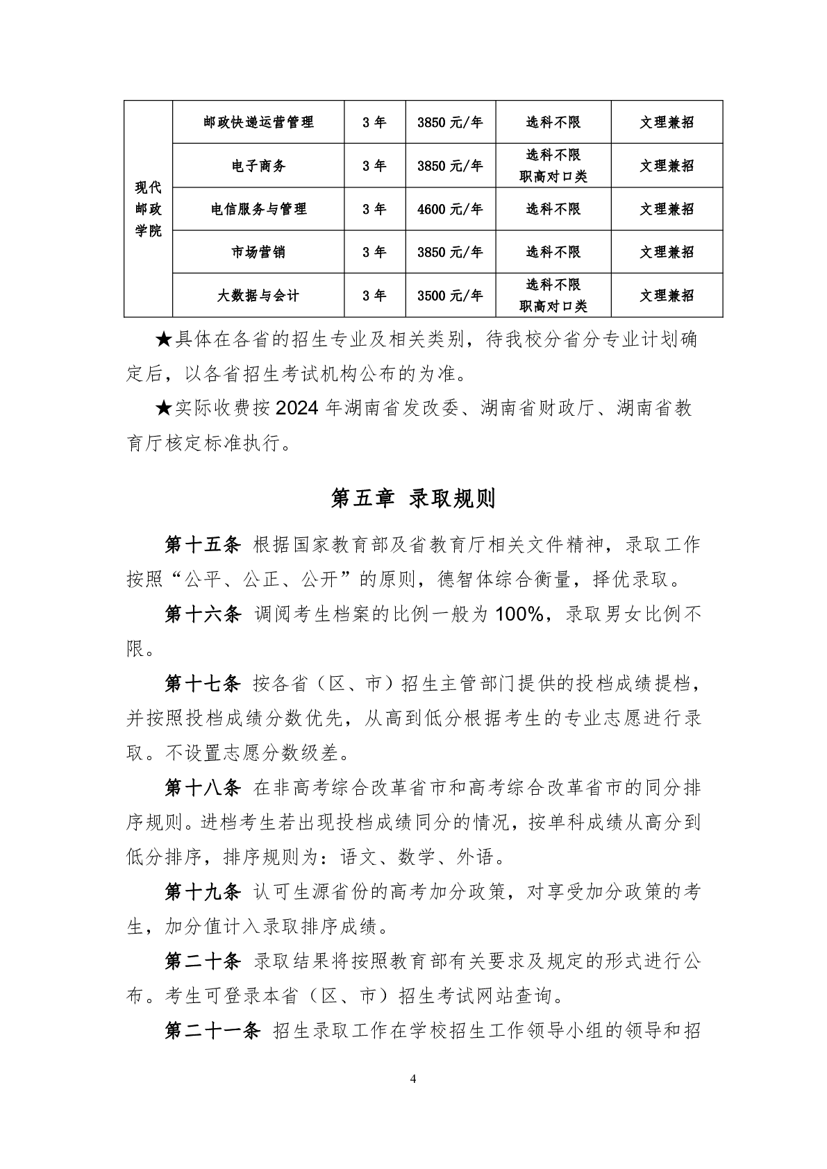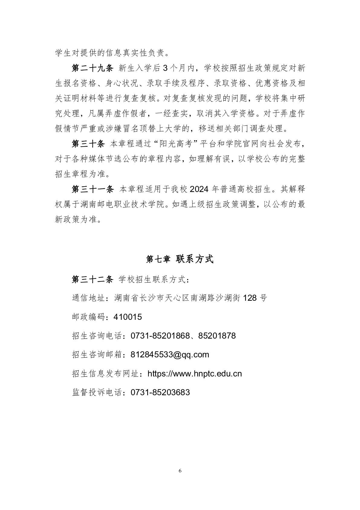 湖南邮电职业技术学院2024年普通高校招生章程