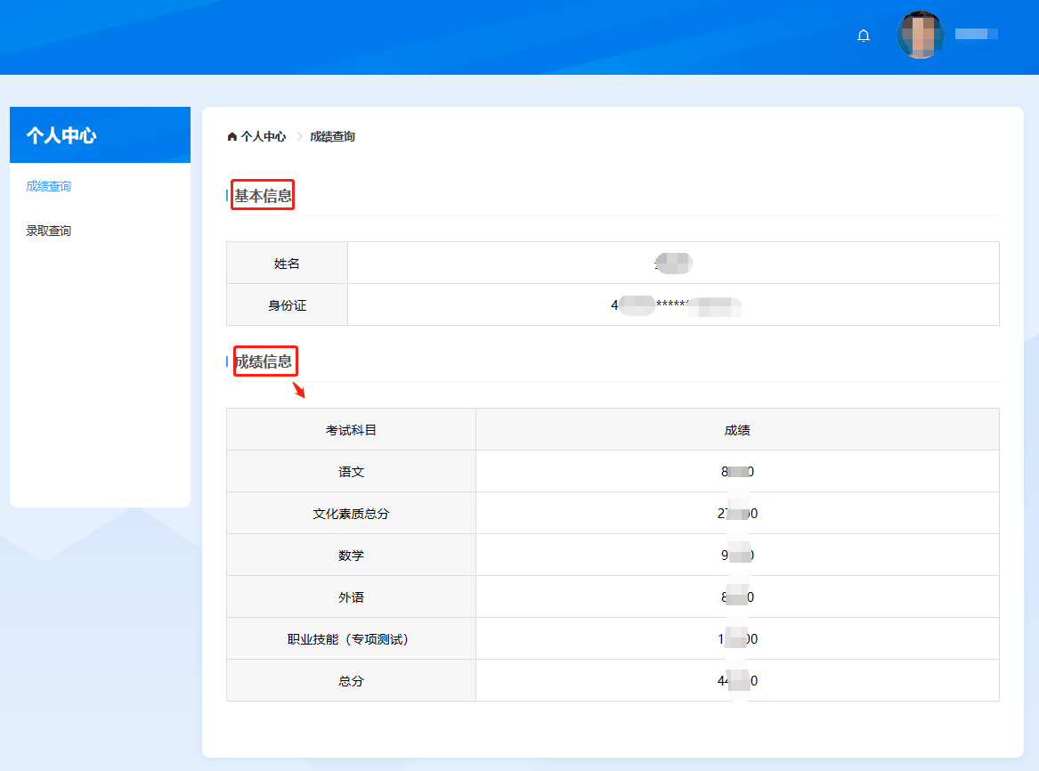 点击成绩查询: