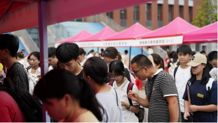 “我希望专升本。”“我希望未来顺利完成学业,结交到志同道合的朋友。”同学们拿着大学生记者团赠送的学校文创小扇子诉说着对未来的期许。“先努力和优秀,再大方拥有。”“扬帆破浪少年行,奋发向上勇攀登。”随处可见的横幅写满了学校对新生的期许,漂亮的打卡墙、可爱的照相框这些拍照的背景板,让这个特别的日子以相片的形式留在同学们的相册中。