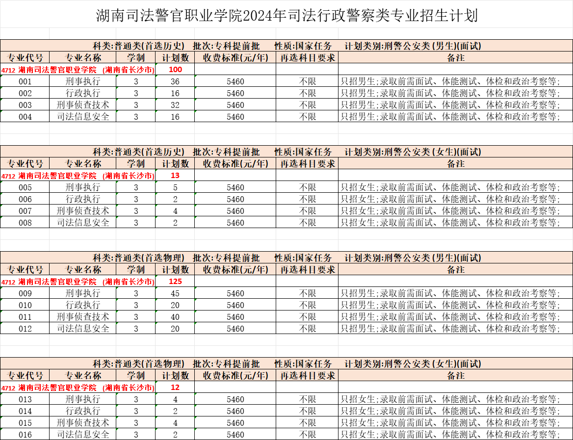 湖南司法警官职业学院2024年司法行政警察类专业招生计划.xlsx