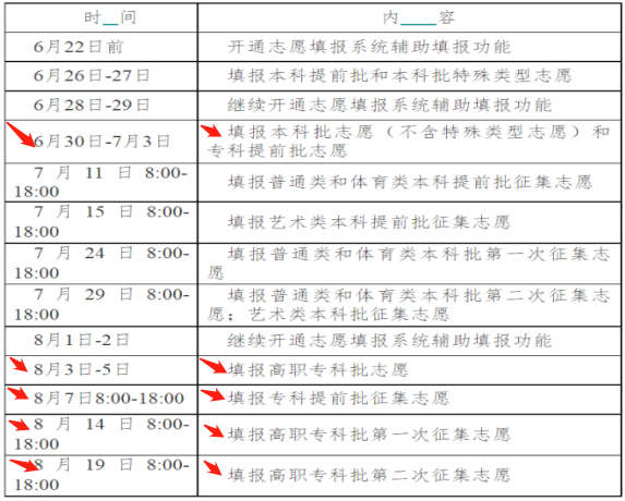 6、志愿填报时间(红色箭头部分与我院相关)