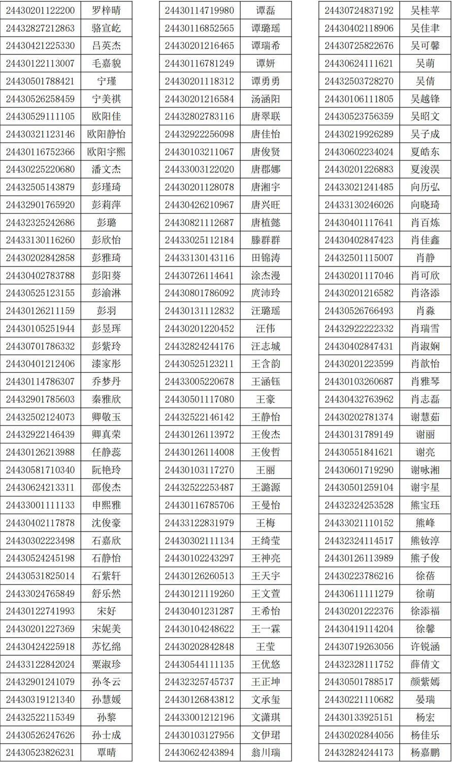 24432922112687 | 邓玉涛 | 24430821112687 | 唐植懿 | 24430114112004 | 易礼谦 |