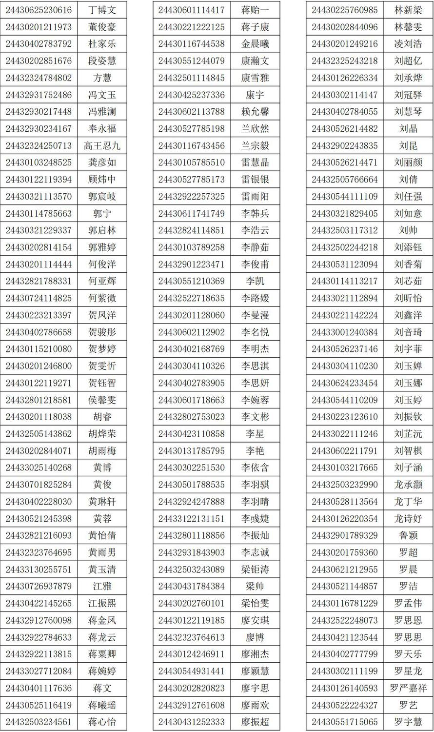 24430321241648 | 刘子畅 | 24432321212221 | 肖祺 | 24430113141329 | 周舰翔 |