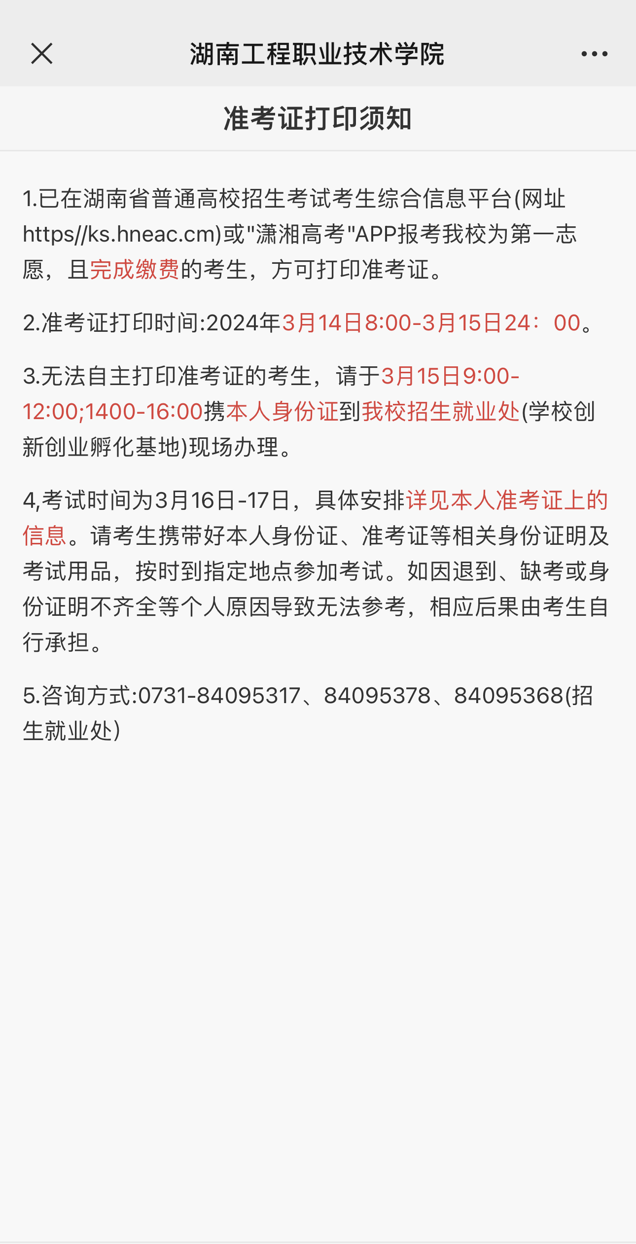 考生须在湖南省普通高校招生考试考生综合信息平台(网址https://ks.hneao.cn)或"潇湘高考"APP报考我校,方可打印考证。