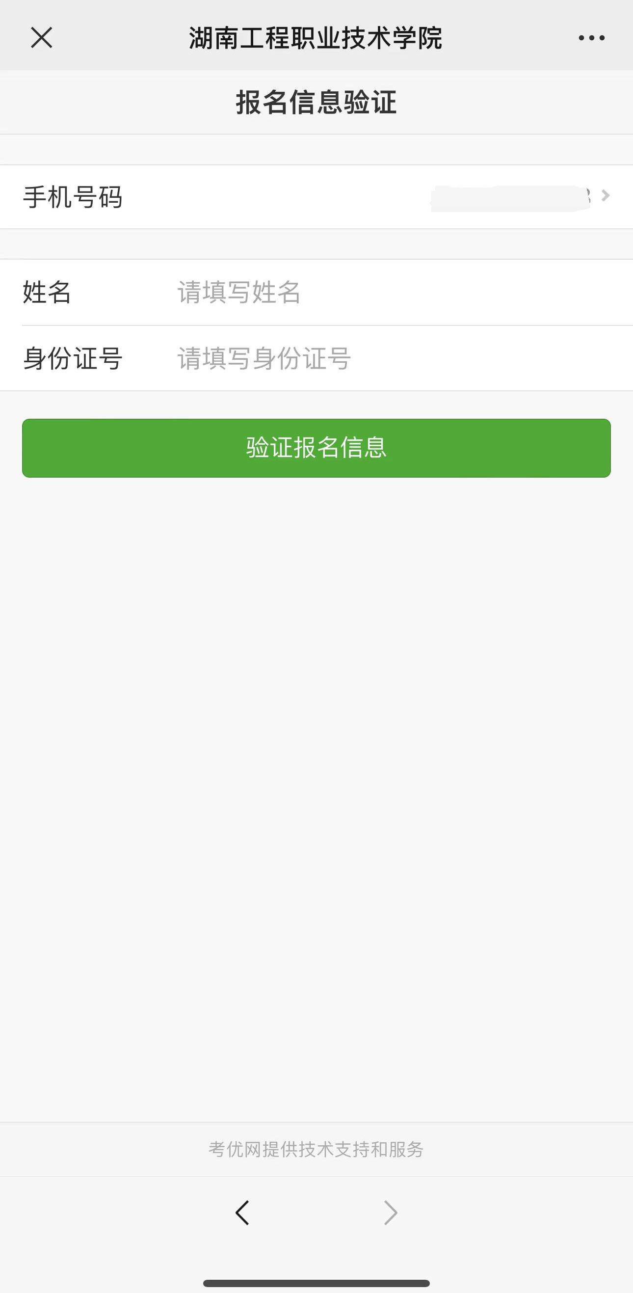 考生填写自己的姓名、身份证号信息,系统验证考生信息是否正确,是否报考我校。