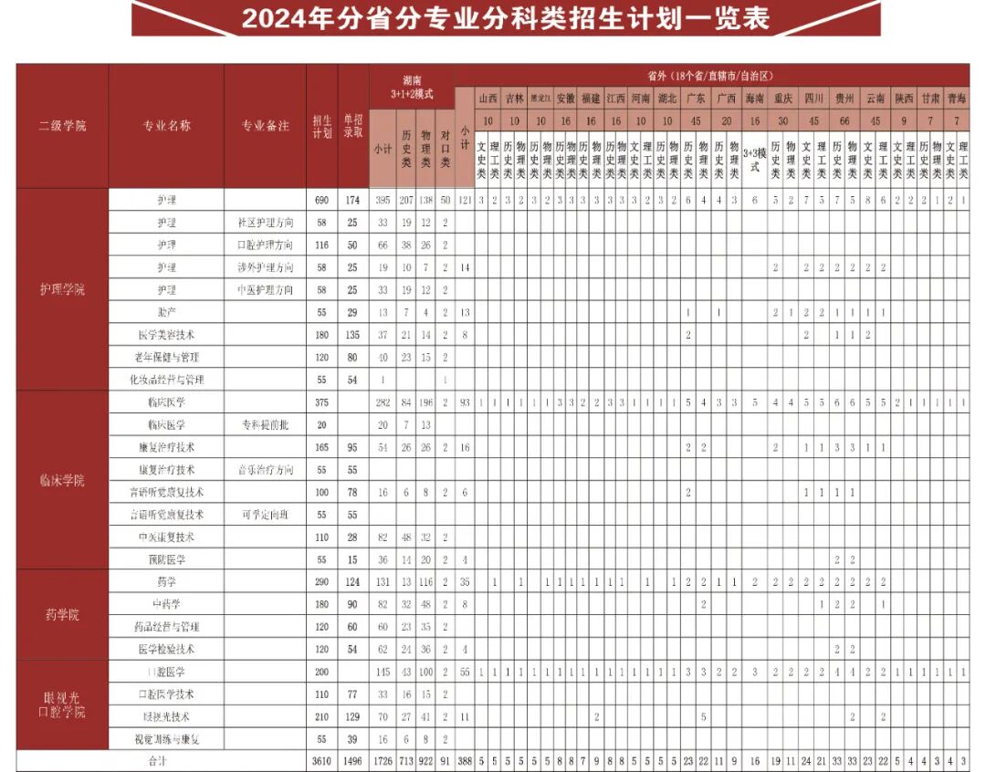 2019年9月,学校搬迁至新校区——长沙市湘江新区香山教育城(岳宁大道6号),占地1050亩。学校基础设施功能齐全,教学仪器设备先进,现有附属医院、教学医院、实习医院、校企合作实训基地230个。校内建设有模拟药房、基础护理和老年保健等虚拟仿真实训平台,有红医精神教育基地、中药标本馆、生命健康教育中心、中草药植物园、急救科普中心、眼保健科普中心等场馆,将着力打造为长沙市健康教育科普示范基地。学校是纯医卫类高职学院,医学学科门类齐全,专业设置结构合理,现开设临床医学、口腔医学、预防医学、口腔医学技术、眼视光技术、康复治疗技术、言语听觉康复技术、视觉训练与康复、医学检验技术、护理、助产、医学美容技术、老年保健与管理、药学、中药学、药品经营与管理、中医康复技术、化妆品经营与管理等专业18个。