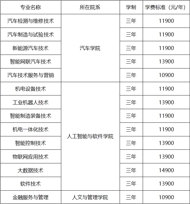 第十三条 我校2024年招生专业共19个。各专业所在院系、学制、学费标准如下表,各专业最终学费标准以2024年湖南省物价主管部门审核为准。