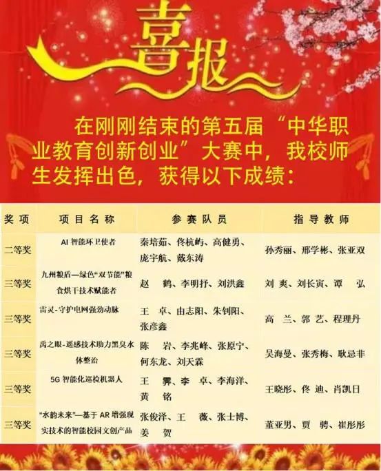 第五届吉林省中华职业教育创新创业大赛指导学生获奖