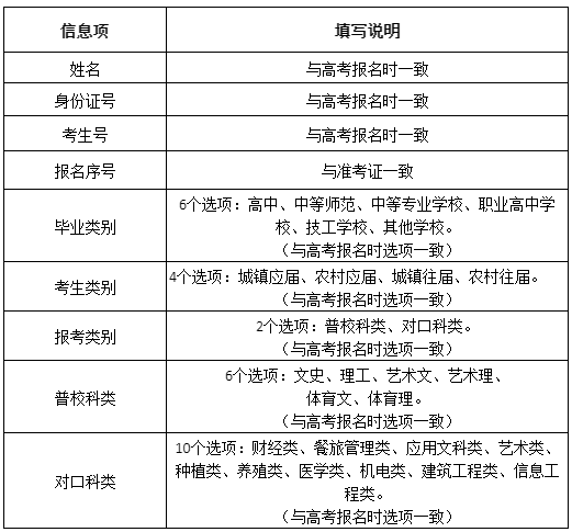 注意事项:所有信息必须与考生参加2023年高考报名所填信息完全一致