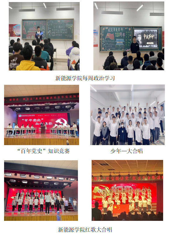 为创建特色文化系部,提高文化品位,构建健康和谐文化氛围,凝聚师生力量,充实校园生活内涵,推进素质教育深入发展,新能源学院开展了多种多样的校园文化活动。以书香校园为原则,学生为主体;以丰富多彩、积极向上的校园文化活动为载体,通过朗诵比赛、征文比赛、辩论赛、趣味运动会、政治学习等活动,让学生在日常学习、生活中接受先进文化的熏陶和文明风尚的感染。