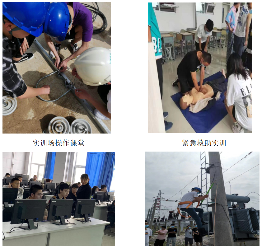 新能源学院拥有金工实训室、配电装置实训室、66kV变电站实训场、300MW和600M火力发电厂仿真运行实训室、100MW风力发电仿真运行实训室、电工电子实训室、电气安全实训室、电机实训室等多个技能训练场所。
