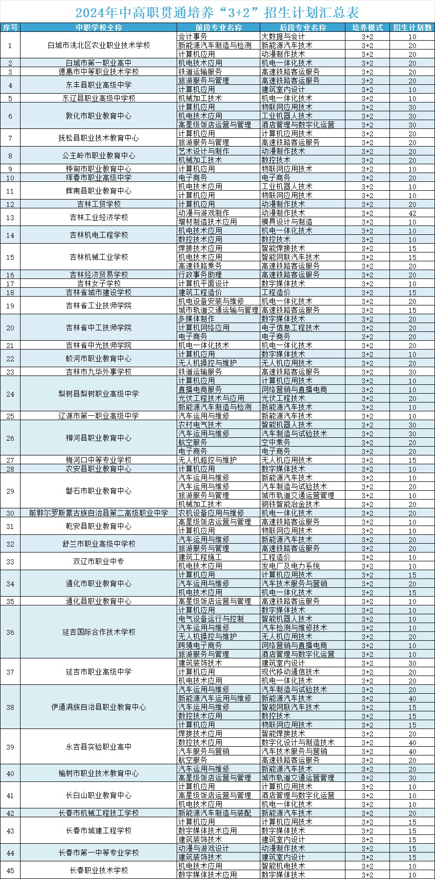 中高职贯通培养招生录取工作由各市(州)教育考试招生部门具体实施,根据学生志愿和中考成绩择优录取。考生户籍、学籍须在吉林省内。