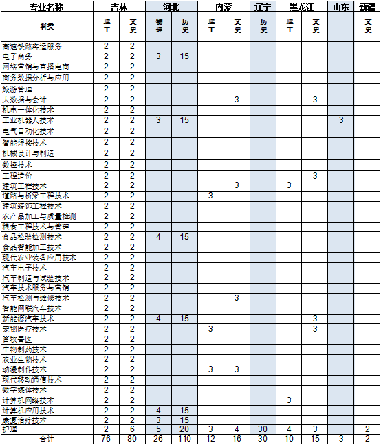 2022年高招分省分专业计划表