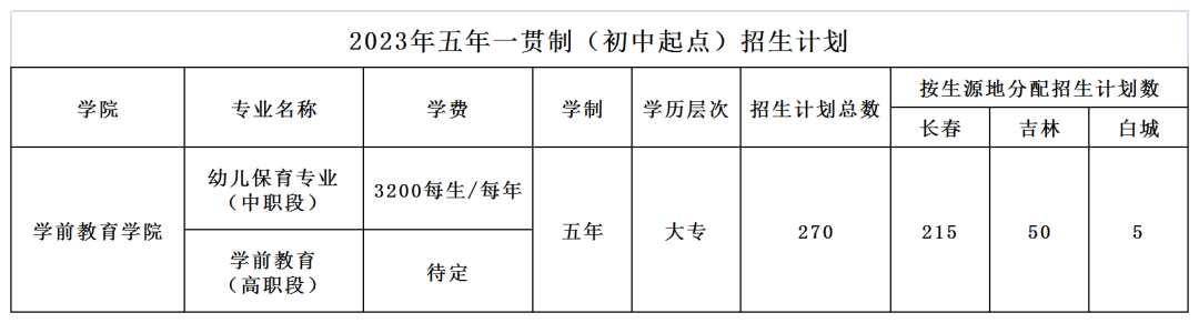 注:“五年一贯制”学生就读地点为长春师范高等专科学校中职部——城建校区(职教园区内)