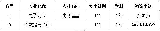 2、招生专业:2个,计划200人,学制2年,培养地点在江西省商务学校(南昌市新建区新城大道1888号),由双方共同组建教学团队,共同制定人才培养方案,共同开展教育教学工作。具体如下: