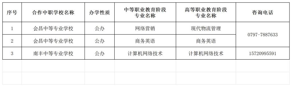 学院2024年与以下中职学校开展开展中高职一体化培养工作,具体招生计划以教育厅公布为准。中高职一体化培养学制为5年,前3年为中等职业教育阶段,自第4学年起开始进入高等职业教育阶段。请有意向报考的学生自行与中职学校联系。