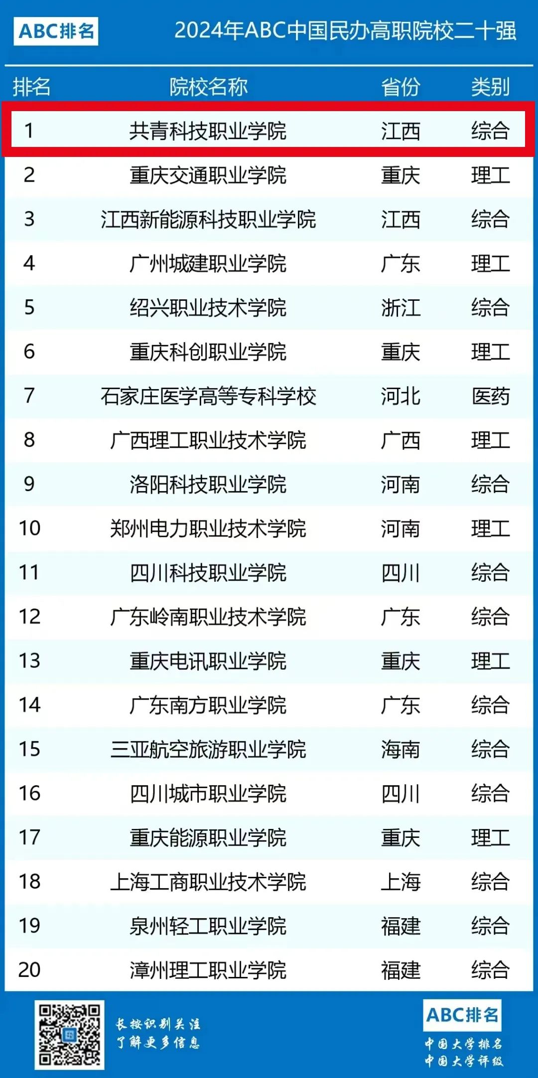 据中国高等教育学会发布的《2023全国普通高校大学生竞赛分析报告》,学校在2019-2023全国民办高职院校大学生竞赛中排名第3位,在2024年ABC中国民办高职院校20强中排名第1位;2024年校友会中国民办高职院校排行榜中学校排名第8位。
