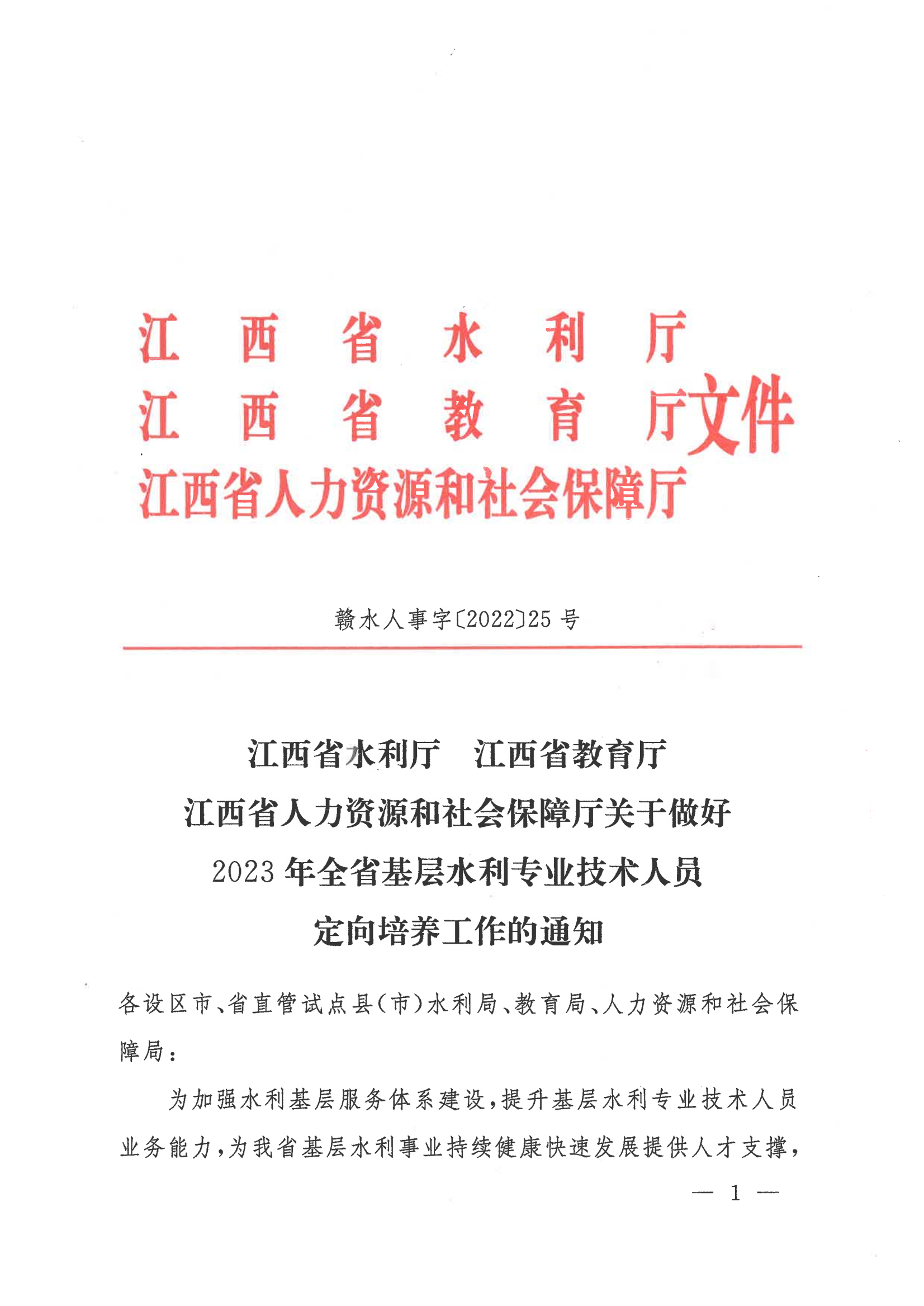 2023年全省基层水利专业技术人员定向培养的通知