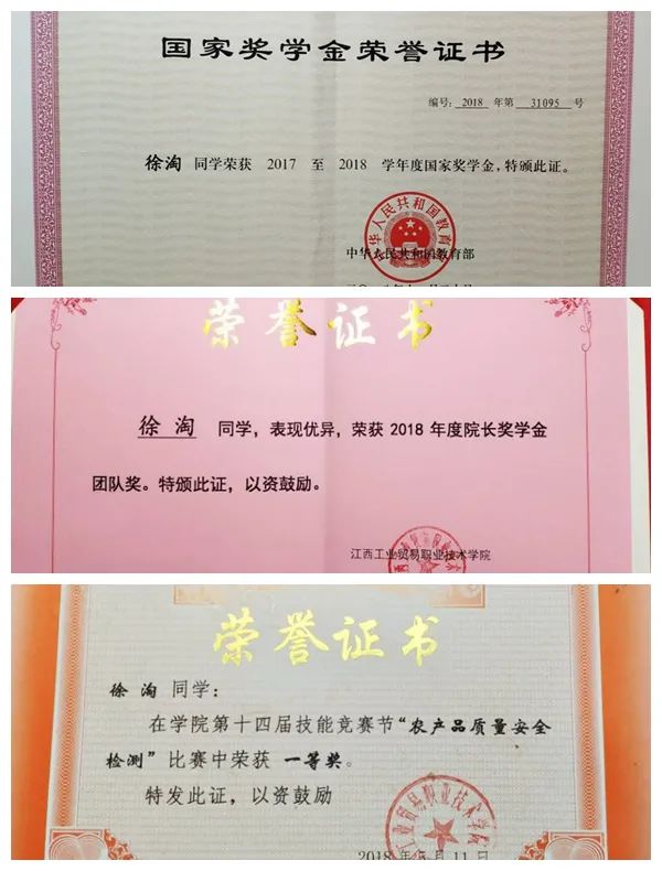在校期间曾荣获江西省大学生自强之星奖学金、中国大学生自强之星奖学金、国家励志奖学金、全国“互联网+”创新创业大赛铜奖。