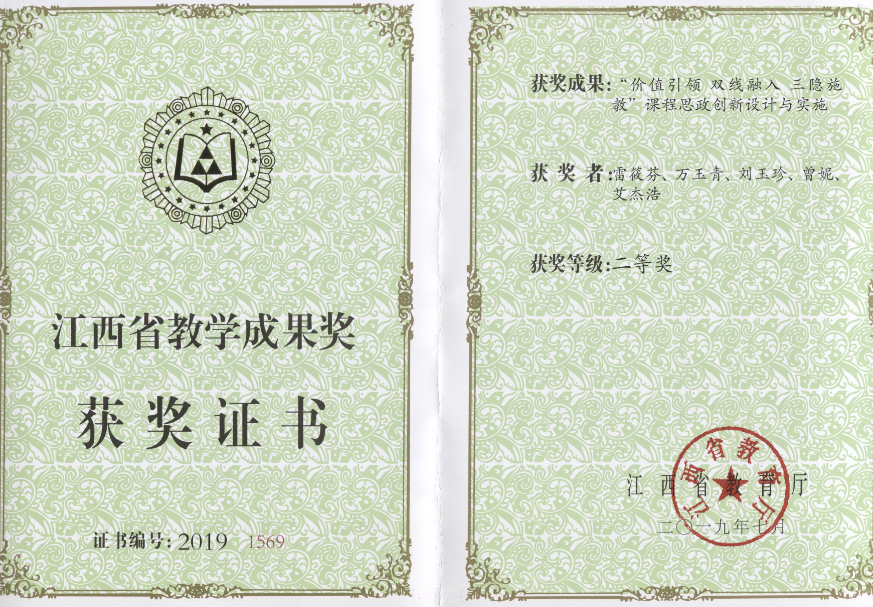 (3)江西省优秀教学团队,荣获全国教学能力比赛一等奖,省级教学能力比赛一等奖;