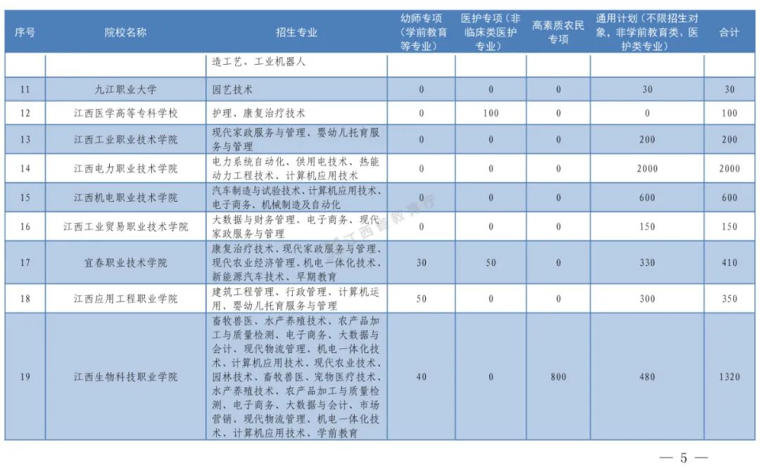 (三)根据省农业农村厅、省教育厅、省财政厅《关于纵深推进“一村一名大学生工程”的实施意见》(赣农字〔2020〕50号),高职院校对高素质农民培养计划考生免予收取学费、书费和住宿费。