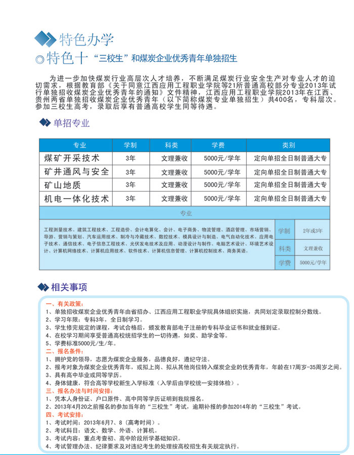 我院办学特色十“三校生”和煤炭企业优秀青年单独招生