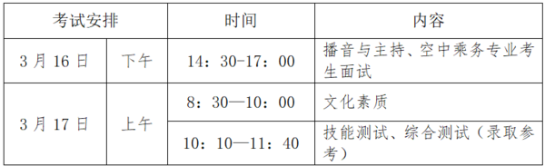 ● 注:凡六个专业志愿中填有播音与主持及空中乘务专业的学生,均需参加面试。