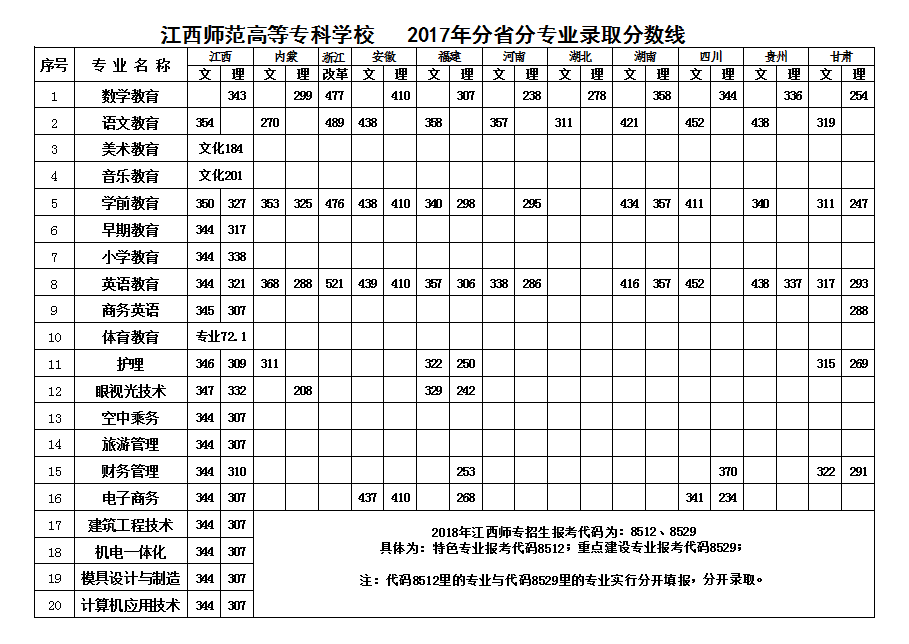 江西师范高等专科学校2017年分数查询