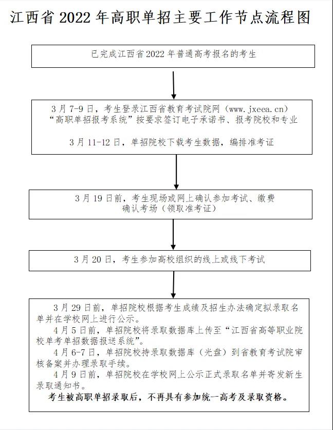 1.高职单招对象:已完成江西省2022年普通高考报名的考生均可报考。尚未完成高考报名的,可于3月1-3日统一到户籍或毕业学校所在县(市、区)招办办理补报名手续。