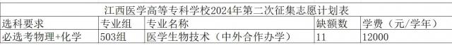 因我校医学生物技术(中外合作办学)专业还有空缺计划,我校将参加江西省第二次征集志愿,具体如下(以江西省教育考试院公布专业、计划为准):