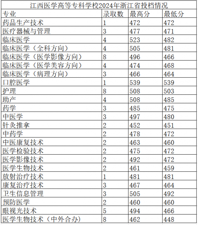 经江西省、山东省、浙江省、陕西省、吉林省、安徽省、重庆市、广东省教育考试院的相继投档,我校2024年在江西省、山东省、浙江省、陕西省、吉林省、安徽省、重庆市、广东省的录取工作已经圆满结束,具体录取情况见下表。(江西省是高职专科批次平行志愿及第一次征集志愿的录取工作已结束)