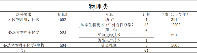 备注:除了药品生产技术专业,其他专业不招色盲、色弱的考生