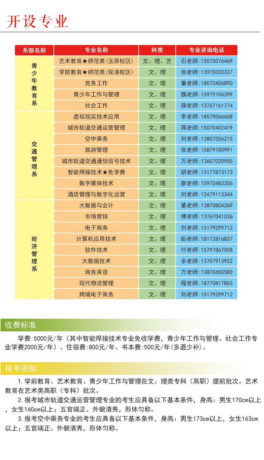 艺术教育(师范类)、学前教育(师范类)、青少年工作与管理专业志愿在提前批次高职(专科)填报,其它19个专业志愿在高职(专科)批填报,艺术类考生在艺术类高职(专科)批次填报艺术教育(师范类)专业志愿。