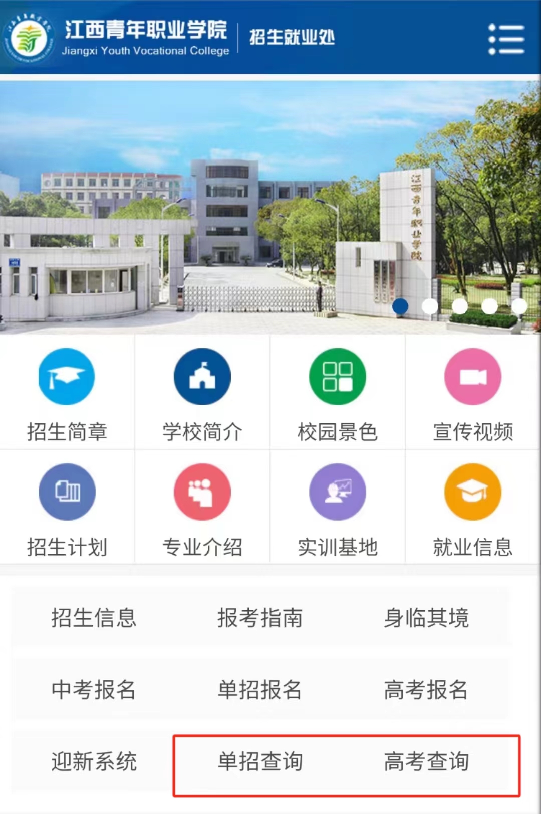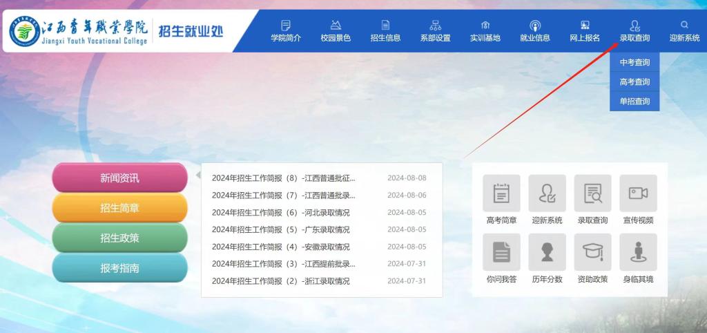 打开“江西青年职业学院招生官网(https://zs.jxqy.edu.cn/)”;