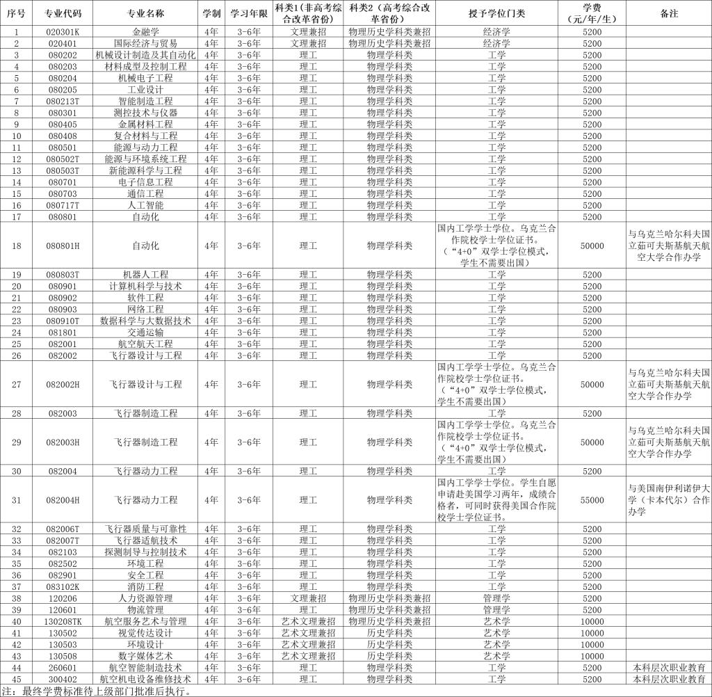 自动化(中外合作办学)、飞行器设计与工程(中外合作办学)、飞行器制造工程(中外合作办学)、飞行器动力工程(中外合作办学)专业只招有志愿的考生。
