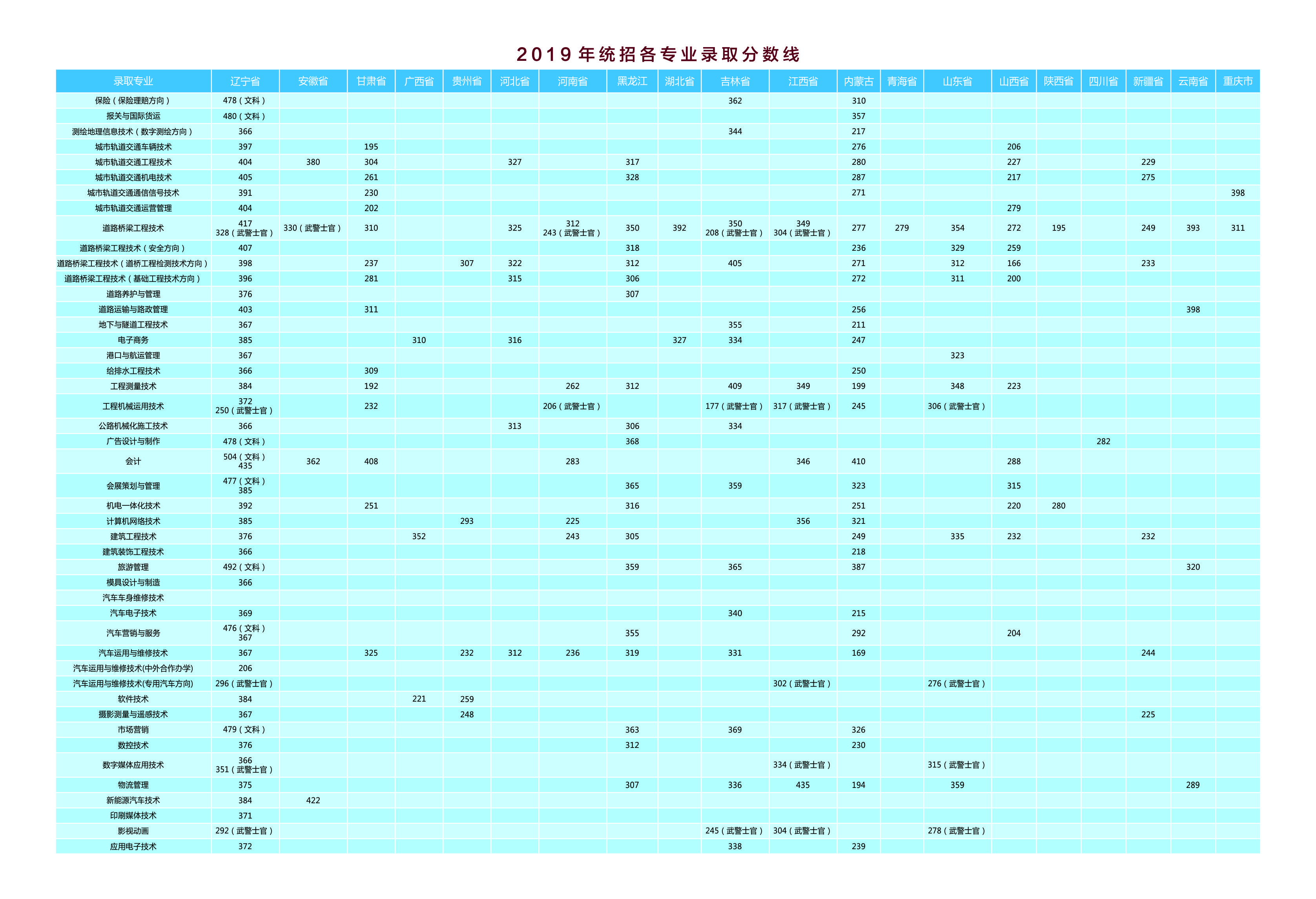 【2019】2019年外省统招专业录取分数线