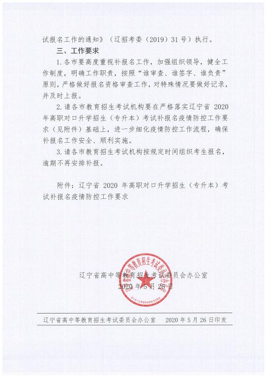 辽招考办【2020】15号-关于做好辽宁省2020年高职对口升学招生考试补报名工作的通知