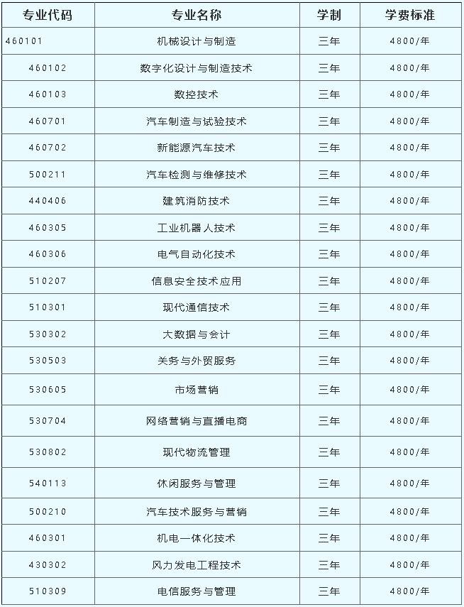 招收普通高中毕业生、中职毕业生专业