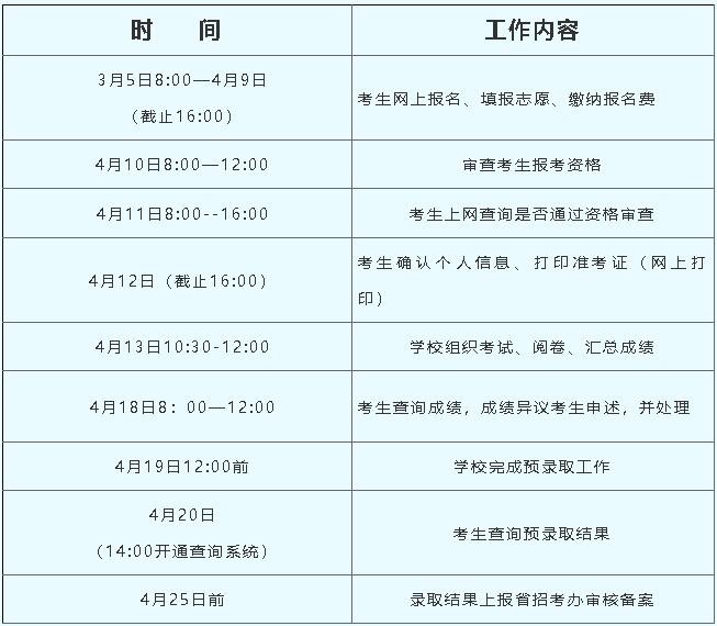 2024年单独招生工作流程时间安排表