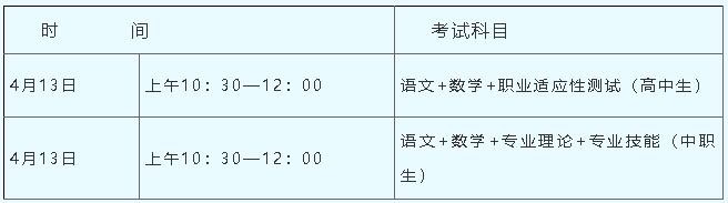 1、考生成绩:高中考生考试成绩由文化基础测试成绩、职业适应性测试成绩组成。中职考生考试成绩由文化基础测试成绩、专业理论、专业技能组成。加分政策按照国家相关政策实行。