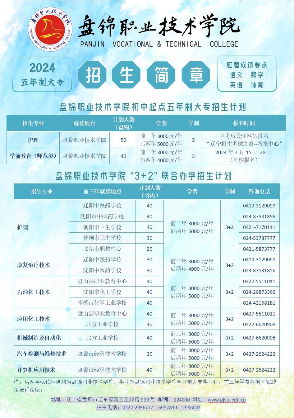 盘锦职业技术学院2024年初中起点五年制报名指南