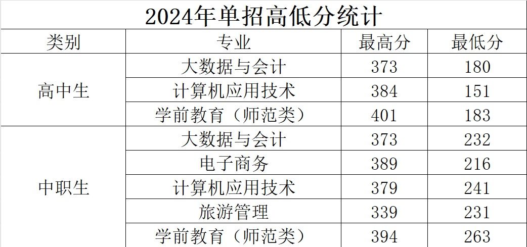 辽宁民族师范高等专科学校2024年单独招生各专业最高最低分