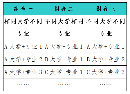 也就是说,如果目标是A大学,可以像“组合一”那样填报;如果目标是专业,可像“组合二”那样,选择不同的大学都报同一个专业;如果大学和专业没有明确目标,就可以像“组合三”那样穿插填报。以上三种组合形式,共同组成112个志愿(普通类本科批)。“专业+学校”的招生录取方式,可以使考生选择自己心仪并擅长的学校和专业,促进个性特长的发展,增加学习动力和信心,同时也能促进高校进一步加强学科建设,最终有利于国家相关领域人才的培养。