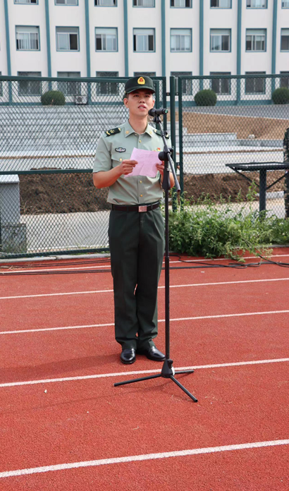 副参谋长户清泉首先对我院领导的充分信任表示衷心的感谢并致以崇高的敬意。同时表示,全体教官将严格按照大学生军训任务要求和相关纲要进行训练,为保证训练质效,全体教官一定会率先垂范,严以律己,自觉遵守学校的各项规定,在军训中严格标准,循序渐进,科学施训。副参谋长户清泉也在讲话中对同学们提出了三点期望:一是希望同学们把自己当成一名真正的军人,严格要求自己,继承和发扬不怕苦、不怕累,艰苦奋斗的精神,克服困难,努力拼搏;二是希望同学们严守纪律,争当模范,增强礼貌修养的自觉性,从此刻做起,从身边小事做起,自觉维护各项规章制度;三是希望同学们每天训练后认真总结,深化提高,为接下来的大学生活打下坚实的基础。