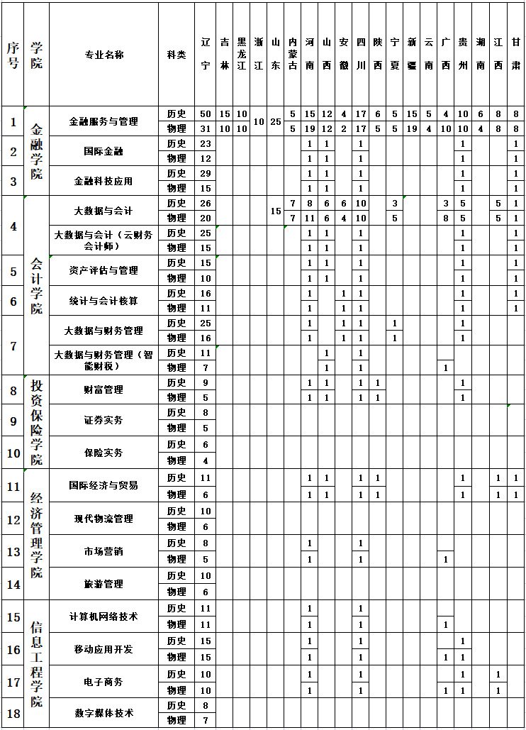 辽宁金融职业学院2022年高考招生计划