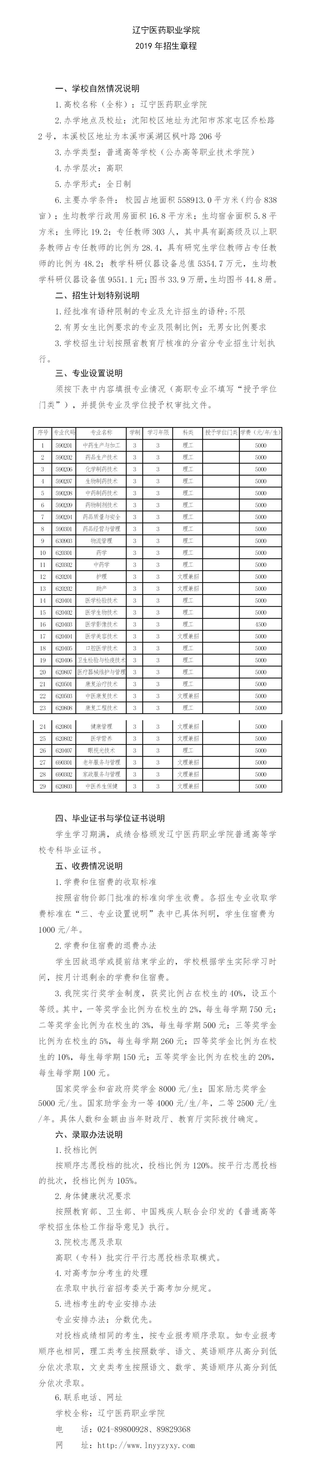 辽宁医药职业学院2019年招生章程