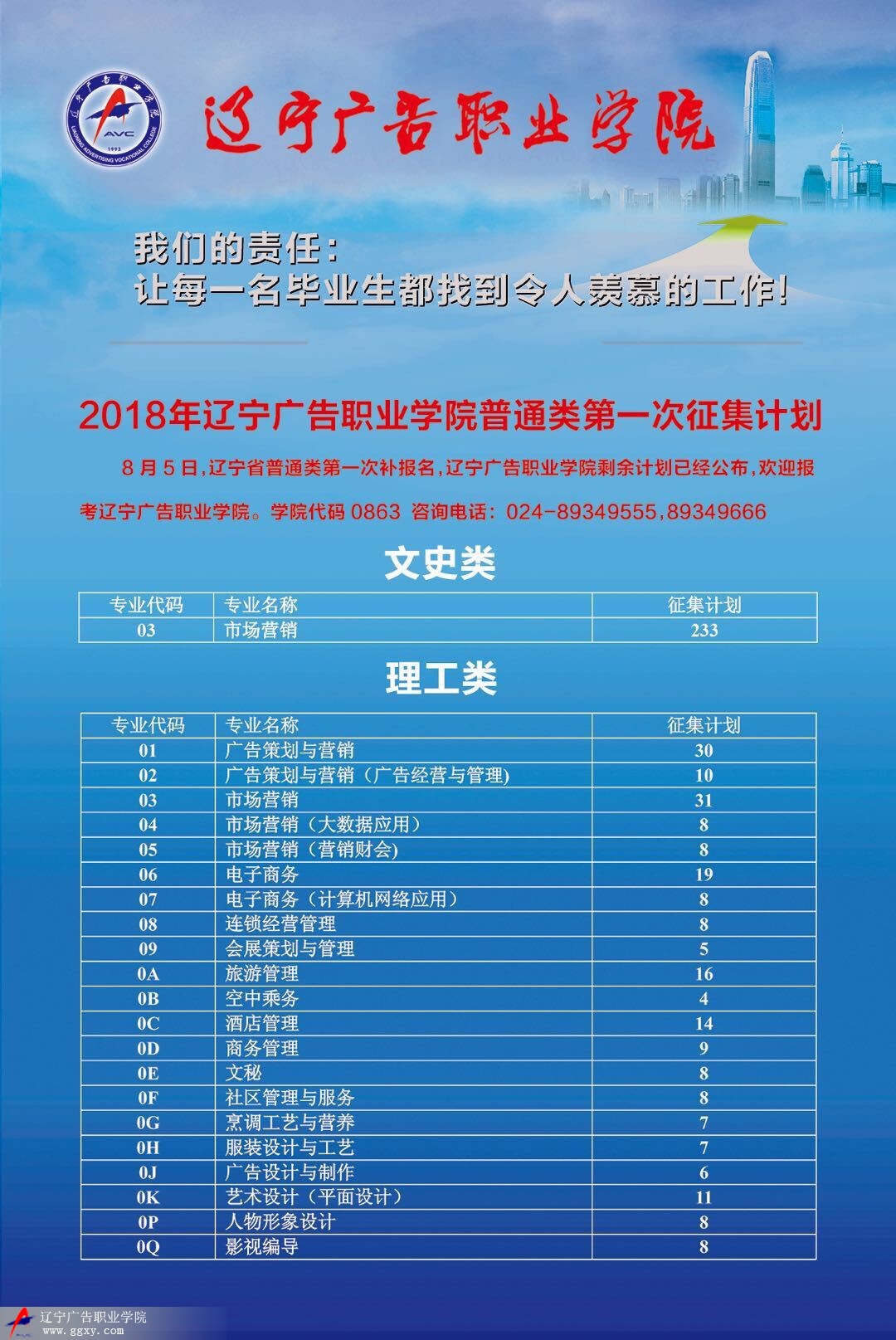 2018年辽宁广告职业学院普通类第一次征集计划