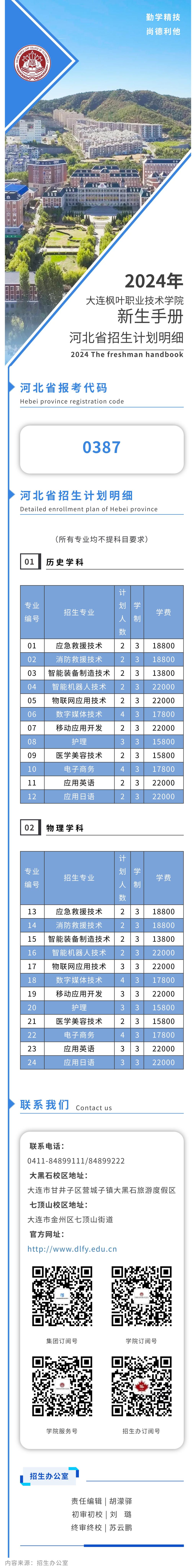 2024年大连枫叶职业技术学院河北省招生计划明细(二)